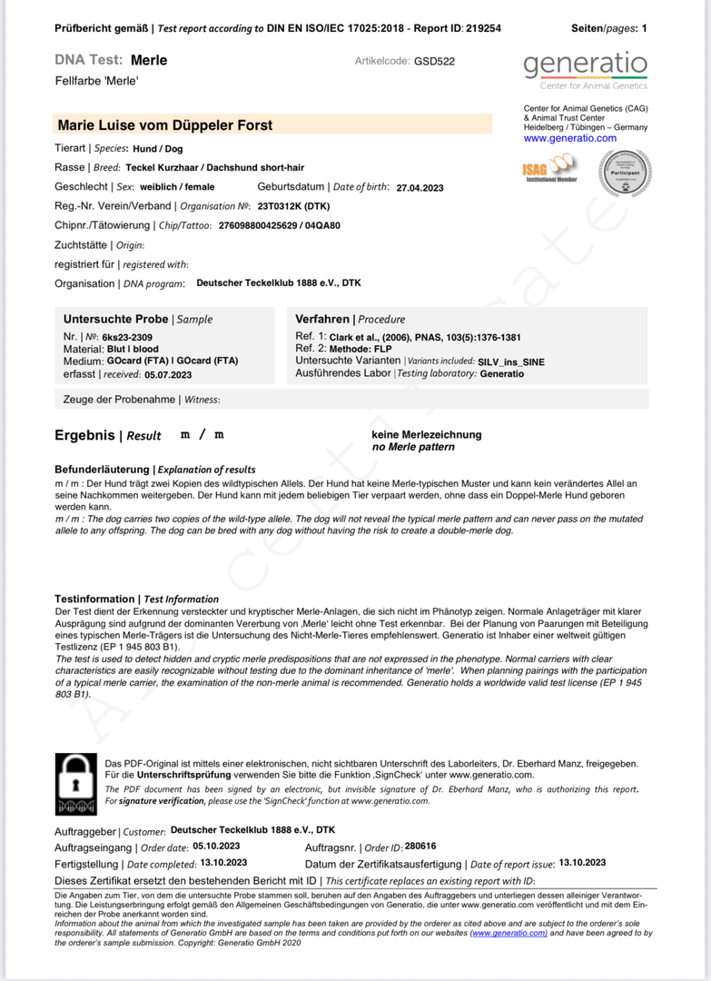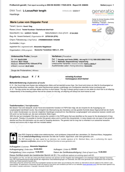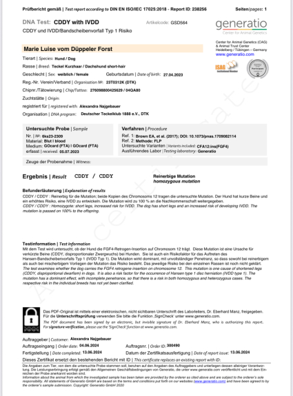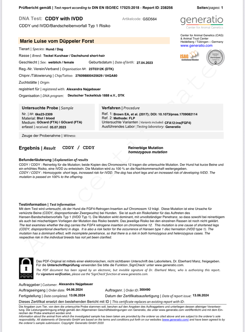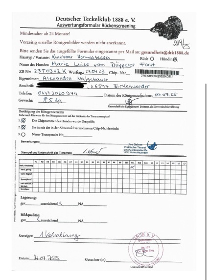Auf der Zuchtschau am erhielt Marie ihren zuchtzulassenden Formwert "Vorzüglich"